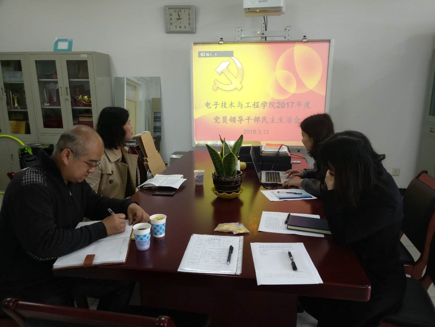 为深入学习党的十九大会议精神和习近平新时代中国特色社会主义精神,贯彻落实学校党委组织部《关于认真开好2017年度二级学院党员领导干部民主生活会的通知》要求,电子技术与工程学院党总支于3月13日上午召开2017年度党员干部民主生活会。学校副校长本党总支联系人窦争妍、党委办公室副主任李涛莅临参会,给予指导。