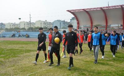 开幕式上,校舞蹈社的舞蹈表演活力四射,尽显校园青春风采。运动员代表吴剑斌,裁判员代表沈骞分别代表运动员、裁判员进行了宣誓。开幕式后,首场足球赛正式开始。由汽车电子技术专业球队对战微电子技术专业球队。国家级足球裁判员吕佳老师为特邀裁判。