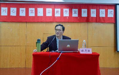 为深入贯彻落实习近平新时代中国特色社会主义思想、十九大精神和全国教育大会精神,电子技术与工程学院于2019年3月21日下午16:00在I401举行“不忘初心,永跟党走”党史党性教育培训班开班仪式暨同心学堂、日新学堂第一讲。学院党总支书记杨莹,学院党总支副书记、学院副院长陈真,专职组织员兼党总支办公室主任李根,学管办主任李翔及全体辅导员,学生干部和我院大一大二入党申请书、入团申请书提交学生参加了本次活动。陈真老师主持活动,李根老师就党建育人课堂“同心学堂”和团建育人课堂“日新学堂”作情况介绍。