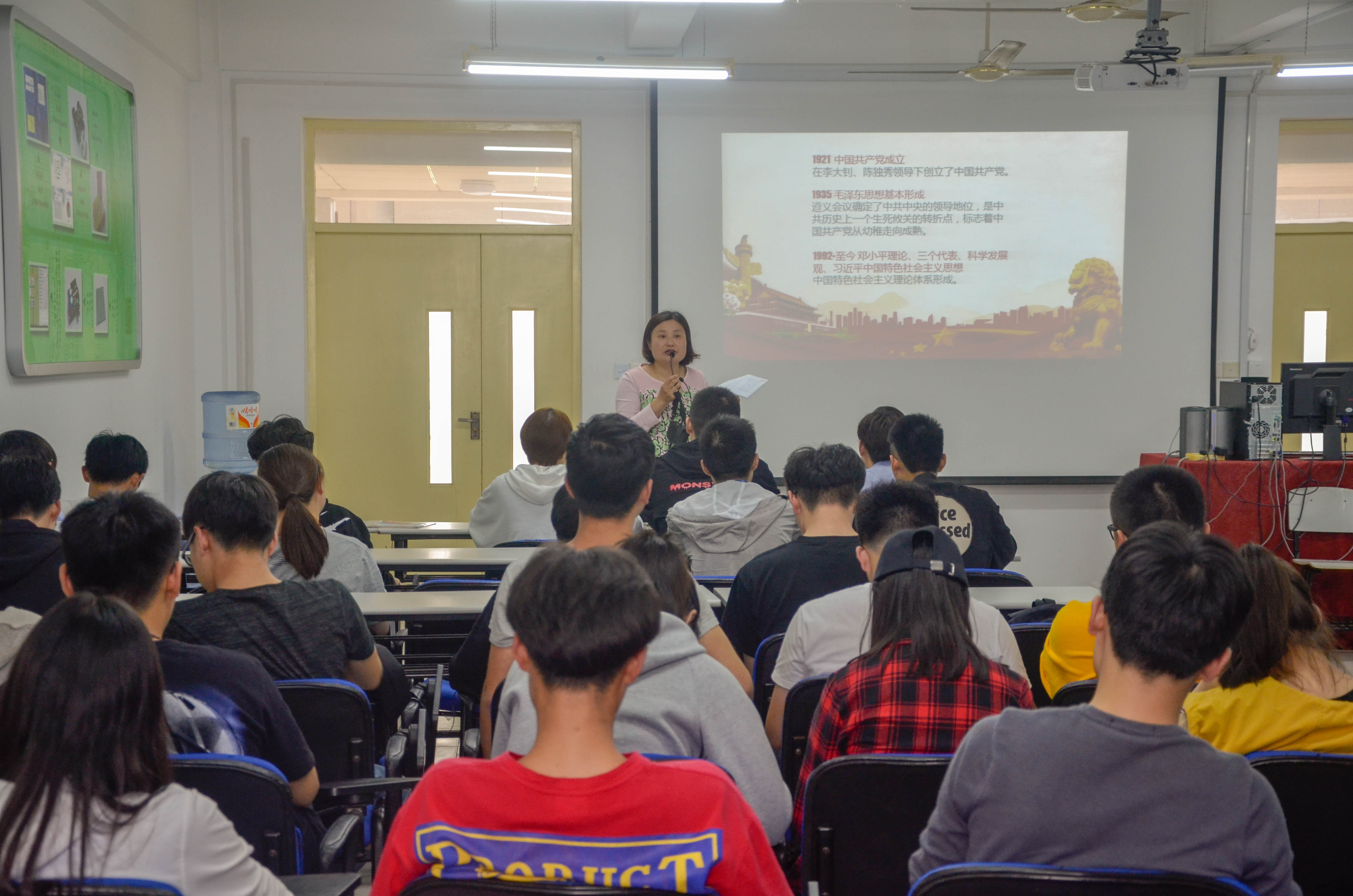 杨莹书记首先带领着同学们一起回顾了中国共产党的发展历程,用生动的案例向同学们展示了我党如何在中华民族命运和前途的每一个关头把握历史大势、提出合乎实际的目标和任务,带领着全中国人民为实现国家和人民的根本利益而不懈奋斗的辉煌历史;随后,杨书记结合习近平新时代中国特色社会主义思想,就如何争做新时代追梦人向在座的同学们提出了几点希望:第一,要有坚定的政治立场,一心一意跟党走;第二,要有健康的体魄,健康的心理,德智体美劳全面发展;第三,练就扎实的技能,努力成为大国工匠。