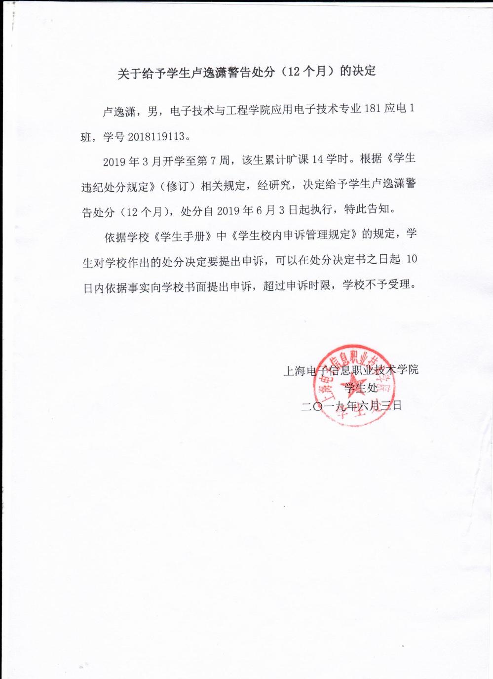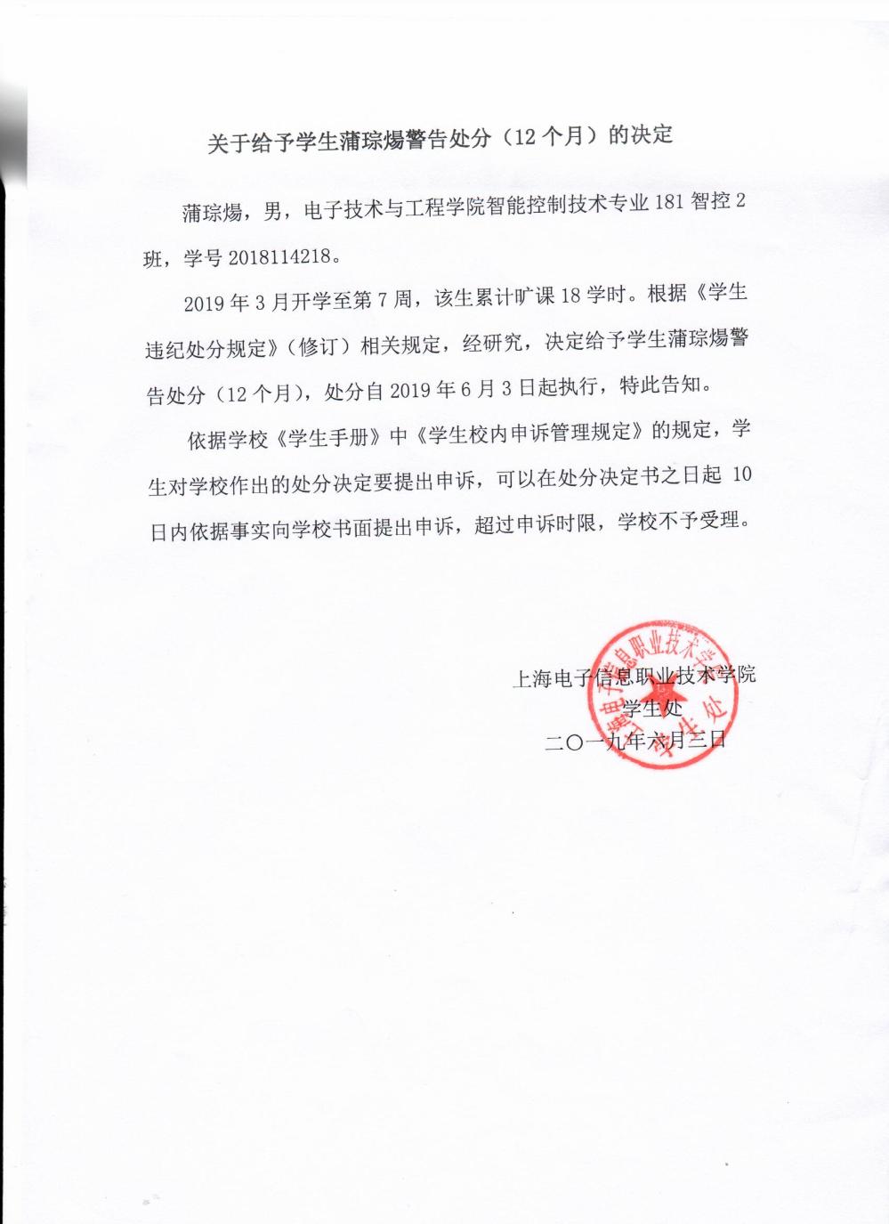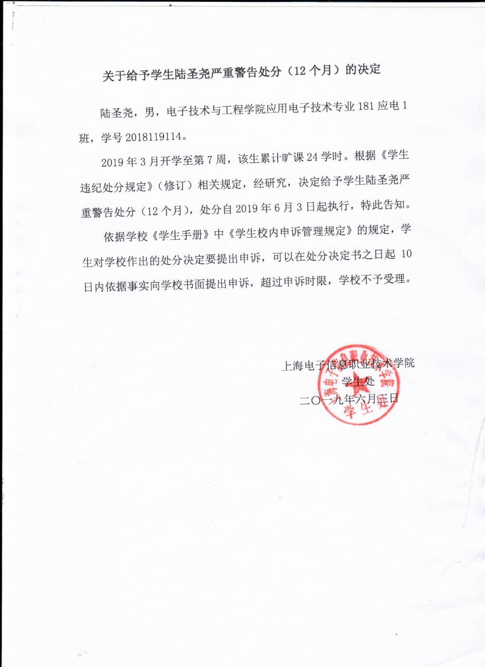 关于给予学生陆圣尧、王浩、蒲琮煬等8位同学处分(12个月)的决定