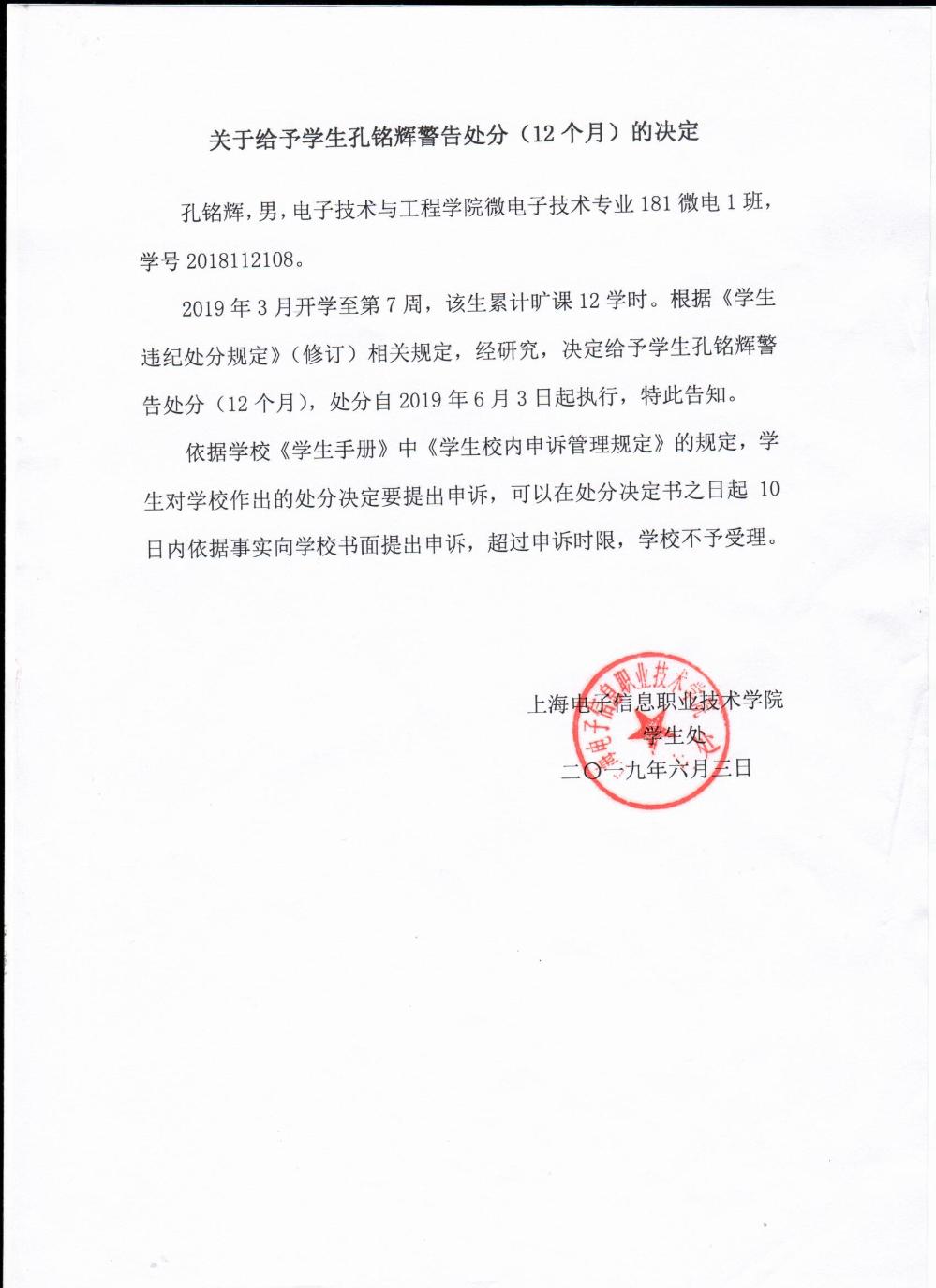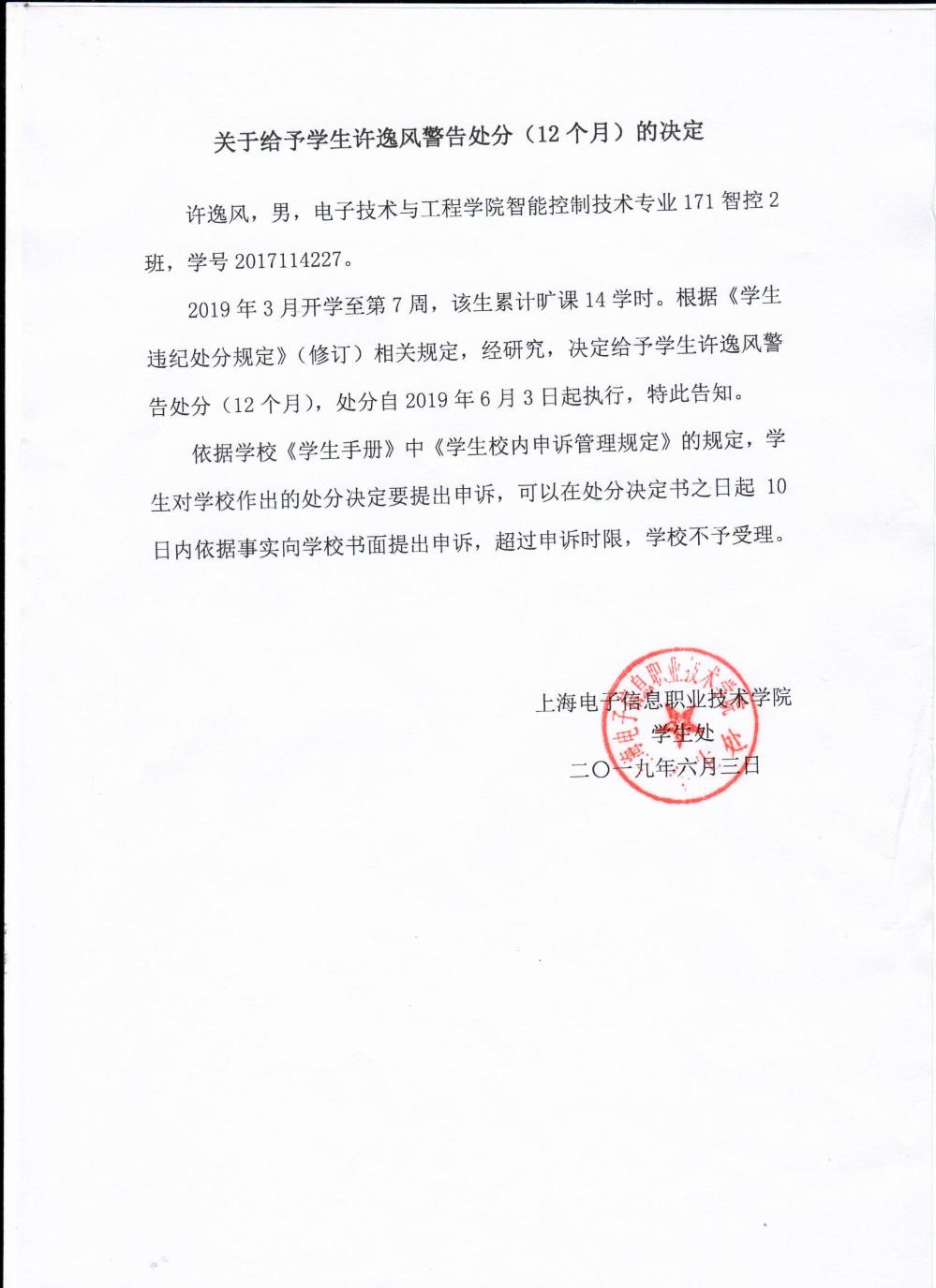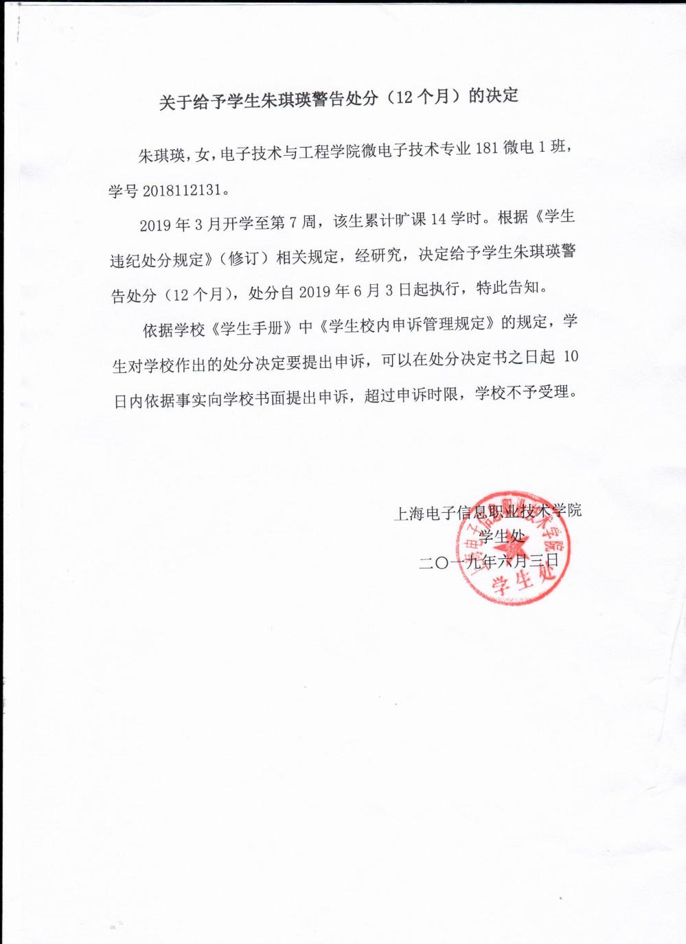 关于给予学生陆圣尧、王浩、蒲琮煬等8位同学处分(12个月)的决定