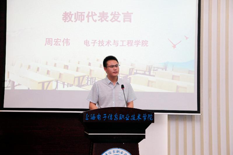 大家上午好!我是电子技术与工程学院的专业老师周宏伟,今天非常荣幸能够作为教师代表发言。