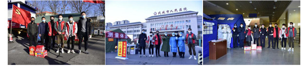图为吴剑斌与他们的队友为武威市人民医院送去补给物资