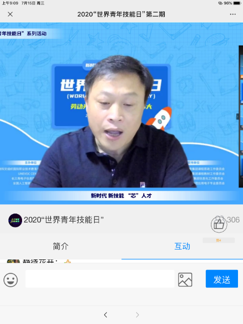 2020年7月15日是第六个世界青年技能日,15日上午,世界青年技能日—新时代·新技能·“芯”人才主题讲座通过线上直播平台举行。
