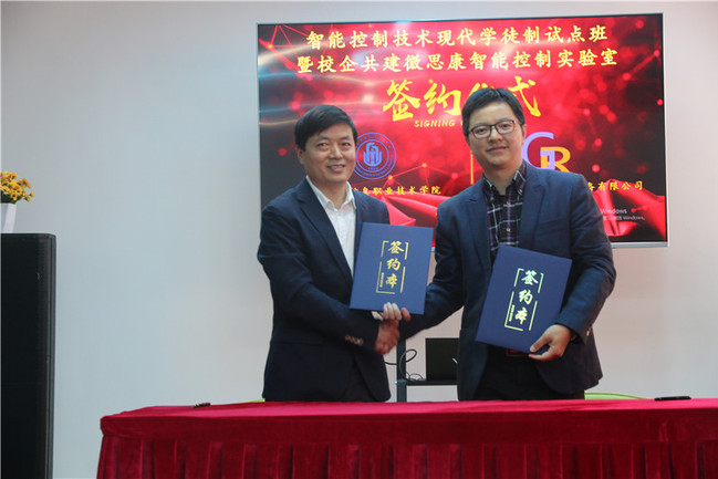 下午,电子技术与工程学院举行项目合作签约仪式。首先,电子技术与工程学院与范植华教授签署了“智能控制技术大师工作室”合作项目。随后,我院并分别与百科、朗讯、甘润、宏晶、加速五家企业签署了“嵌入式人工智能研究所”、“智能控制技术现代学徒制试点班暨校企共建微思康智能控制实验室”、“集成电路专业师资培训及考点建设”、“加速集成电路行业创新基地”、“集成电路研究所”等合作协议。