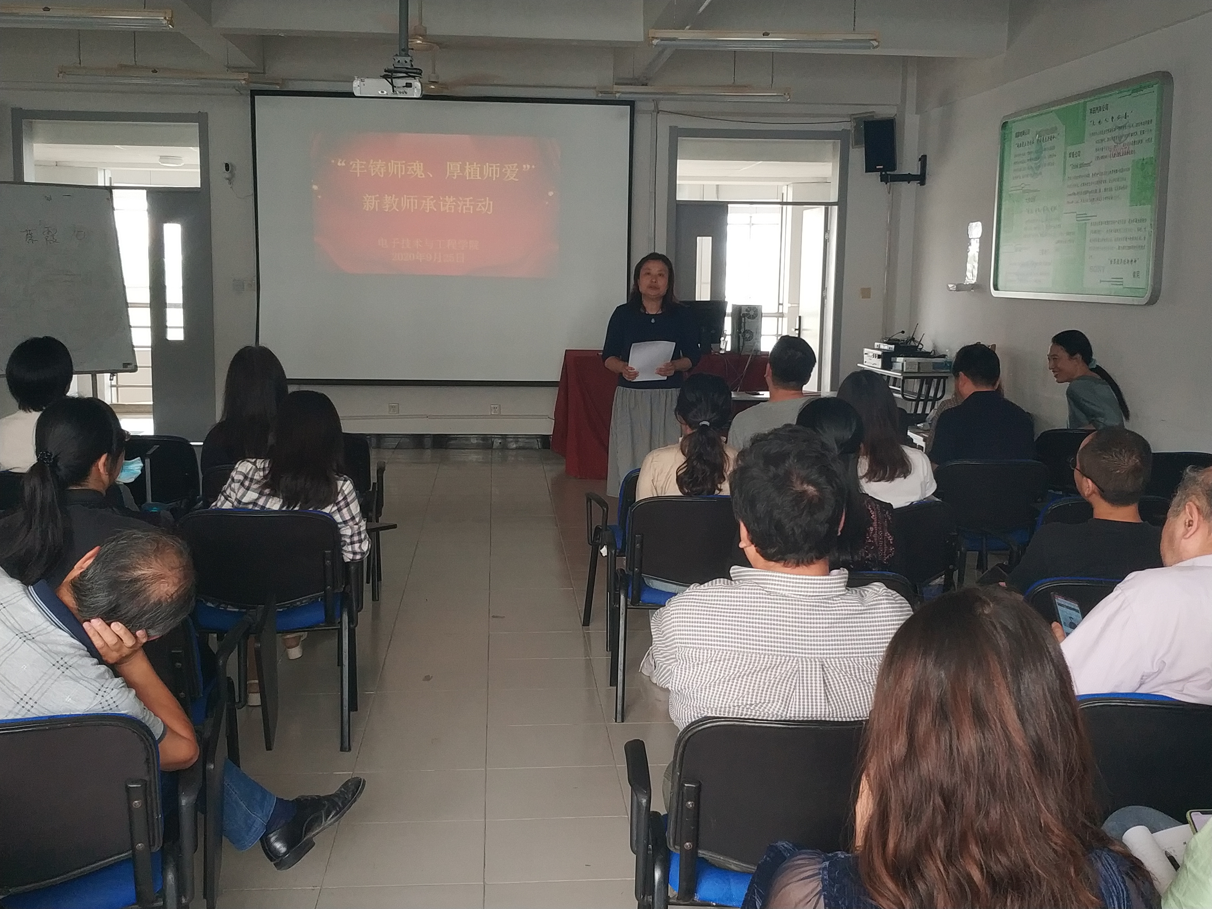 为进一步规范教师履职尽责行为,稳步推进学院师德师风建设,9月25日下午,电子技术与工程学院组织全体教职工开展“牢筑师魂、厚植师爱”新教师承诺活动。