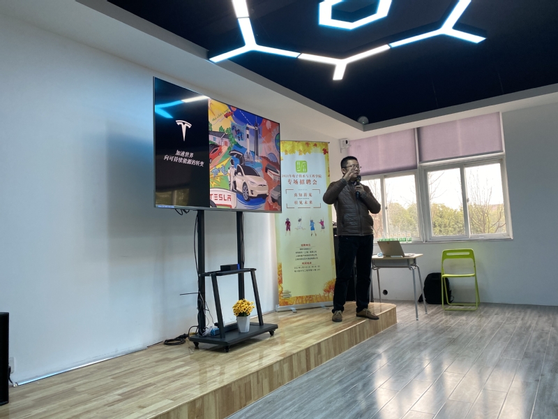 招聘会上午10点准时开始,由特斯拉超级工厂的培训经理潘老师为同学们带来精彩的宣讲,宣讲过程中潘老师将企业的发展历程,企业文化,企业愿景等非常直观生动的传递给了在场的每一位同学,过程中同学们与企业积极互动,气氛非常活跃,宣讲结束后,同学们更是将宣讲老师团团围住,积极提问,纷纷递交简历。紧接着企业马不停蹄的就2个岗位开展了面试。通过和对方人事专员的沟通了解到,企业对我院学生的素质非常肯定,也超预期的招录到满意的学生。