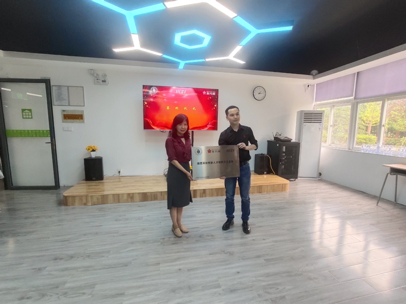 签约仪式结束后,电子技术与工程学院院长邵瑛从微星科技校园人才中心项目总监曾天手中接过微星科技创新人才培养示范基地铭牌。
