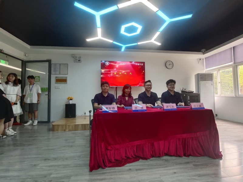 双方领导致辞结束后,电子技术与工程学院院长邵瑛、副书记李军锋、微星中国区总经理汪玉柏、微星笔记本部大中华区总经理庄正雍共同签署了校企合作协议书。