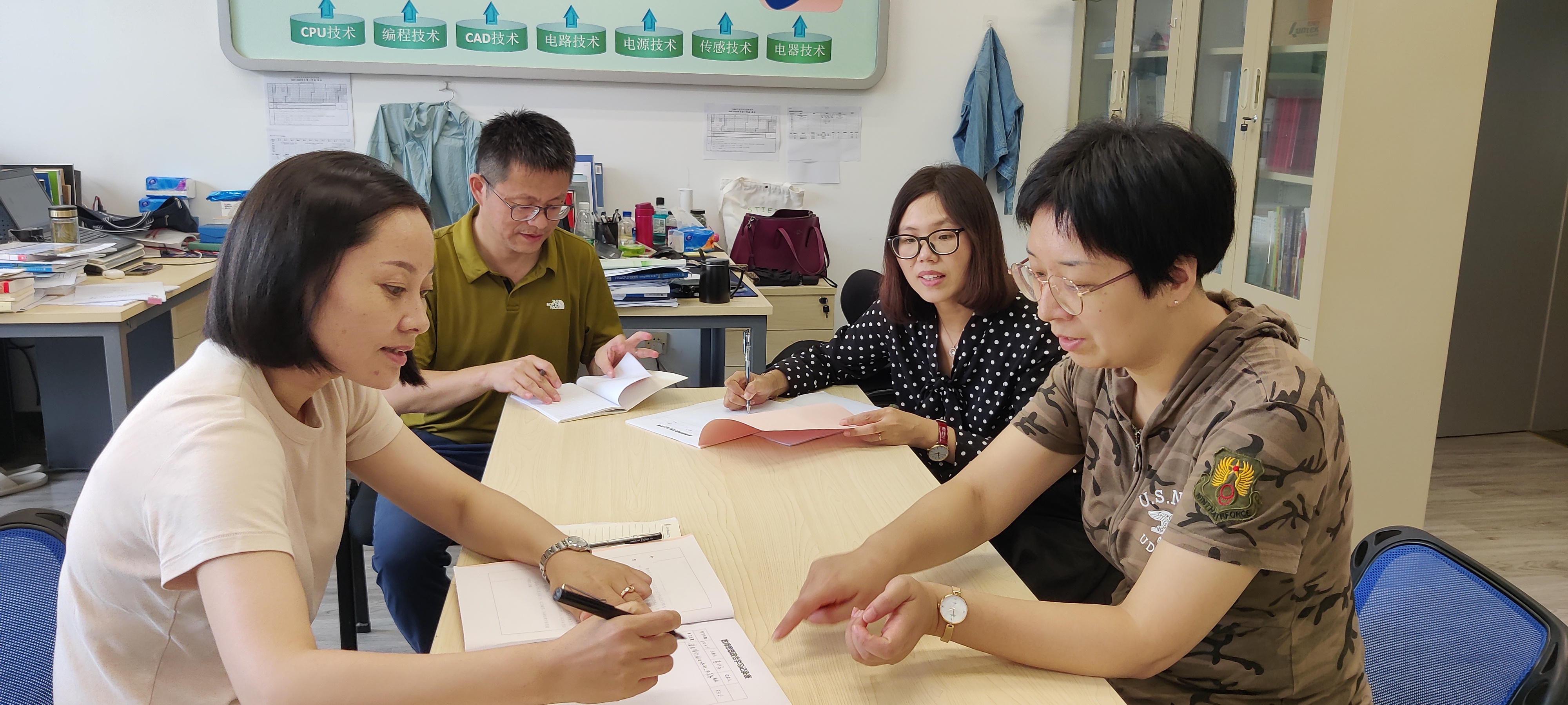 2021年9月,电子技术与工程学院各教研室根据学校有关文件精神,深入开展政治思想学习与集中交流,全体教师集中学习了习近平9 月27 日至28 日在中央人才工作会议上的讲话、9 月24 日李强在上海高校党的建设工作会议上的讲话、走近沪上首批“全国高校黄大年式教师团队” :心有大我至诚报国,当好新时代的“大先生”等学习资料。