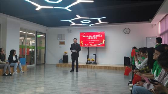 在活动中,学生支部全体师生饱含热情,以高扬的精神姿态展现青春风貌。党员老师集体朗诵《祖国啊,我为你自豪》,优秀辅导员代表张军丽、新生代辅导员代表杜珊、入党积极分子代表苗硕同学、新疆籍少数民族学生艾合·巴里江同学分别为大家诵读了《七律·人民解放军占领南京》、《赵一曼的两封家书》、《沁园春·雪》和《祖国啊 我亲爱的祖国》四个作品,并分享了自己的学习体会。入党积极分子代表赵晨阳同学为师生们讲述了长津湖之战的英雄连长《杨根思》的故事。每一位师生的分享都将我们带回到了曾经硝烟弥漫、战火纷飞的峥嵘岁月,让我们深刻感受到英雄们用鲜血和生命铸就的国家丰碑。