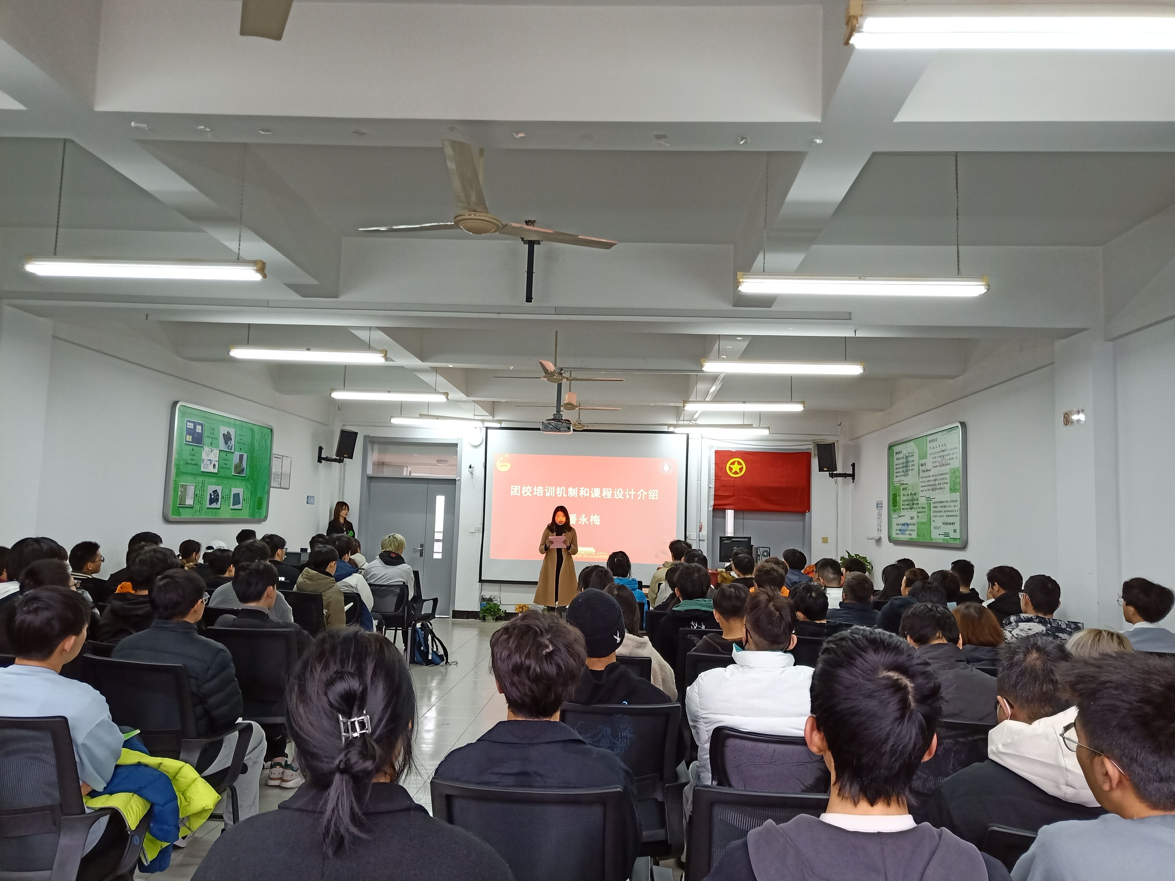 为深入学习贯彻习近平新时代中国特色社会主义思想,培养新时代青年马克思主义者,通过开展教育培训和实践锻炼等行之有效的方式,不断提高大学生骨干、团学干部等大学生群体的思想政治素质、政策理论水平和组织协调能力,使青年大学生进一步坚定跟党走中国特色社会主义道路的信念,2021年12月14日中午,电子技术与工程学院“青年马克思主义工程暨团校培训”开班仪式于N309教室举行。学院党总支副书记、副院长陈真,团总支负责人潘永梅,团总支成员,入团积极分子出席本次会议,开班仪式由团总支组织委员彭书豪主持。