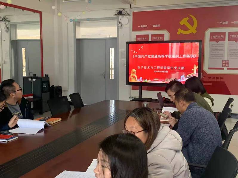 2021年12月23日,电子技术与工程学院学生党支部组织全体党员同志在N307参加集体线下学习中共中央印发修订后的《中国共产党普通高等学校基层组织工作条例》。支部书记秦婧同志主持会议并领学。