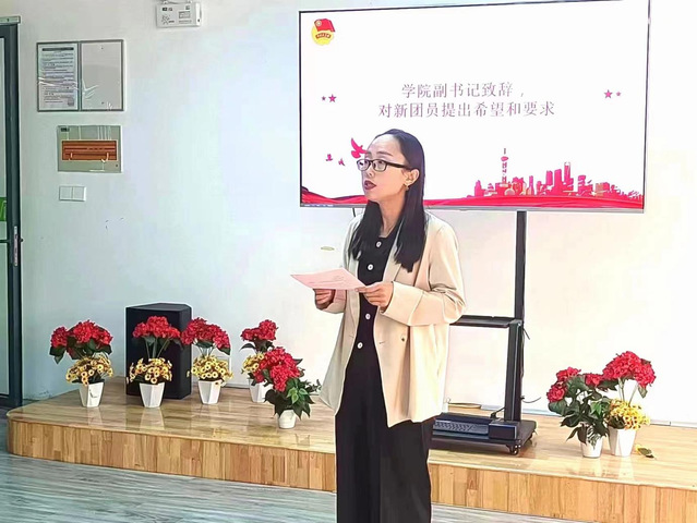 最后,杨烨萍老师代表学院党总支向新团员表达了热烈的祝贺,并对新团员提出了几点希望。她勉励同学们要坚定理想信念,提升综合素养;要珍惜韶华,积极进取、奋勇拼搏;要严于律己,发挥榜样力量,以更加昂扬的姿态团结在团旗下,焕发青春激情,乘风破浪,扬帆远航。