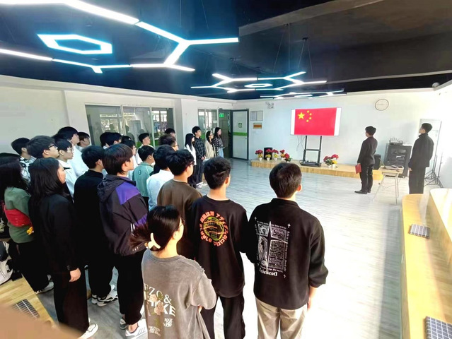 我志愿加入中国共产主义青年团,坚决拥护中国共产党的领导,遵守团的章程......”,薛景老师领誓,新团员在团旗下庄严宣誓,铿锵有力的誓言响彻会场。随后,新团员代表魏知宿同学发言,他表示全体新团员会努力学习、积极工作、严格要求自己,用青春谱写人生乐章。优秀团员代表刘嘉蓉同学表达了最衷心的祝贺,希望新团员能够脚踏实地,注重实践,提升本领,团结奋进,用实际行动履行团的宗旨。