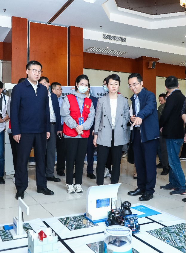 除了对项目的详细介绍,赵坚校长还向解冬副市长介绍了我校近年来的建设情况和取得的成效,包括在科技研究、职业教育方法、学生技能培养等方面的进步。解冬副市长对我校在科技创新和职业教育方面的努力表示赞赏,并鼓励我校继续推动科技研究,提升职业教育质量,为社会培养更多的技能型人才。