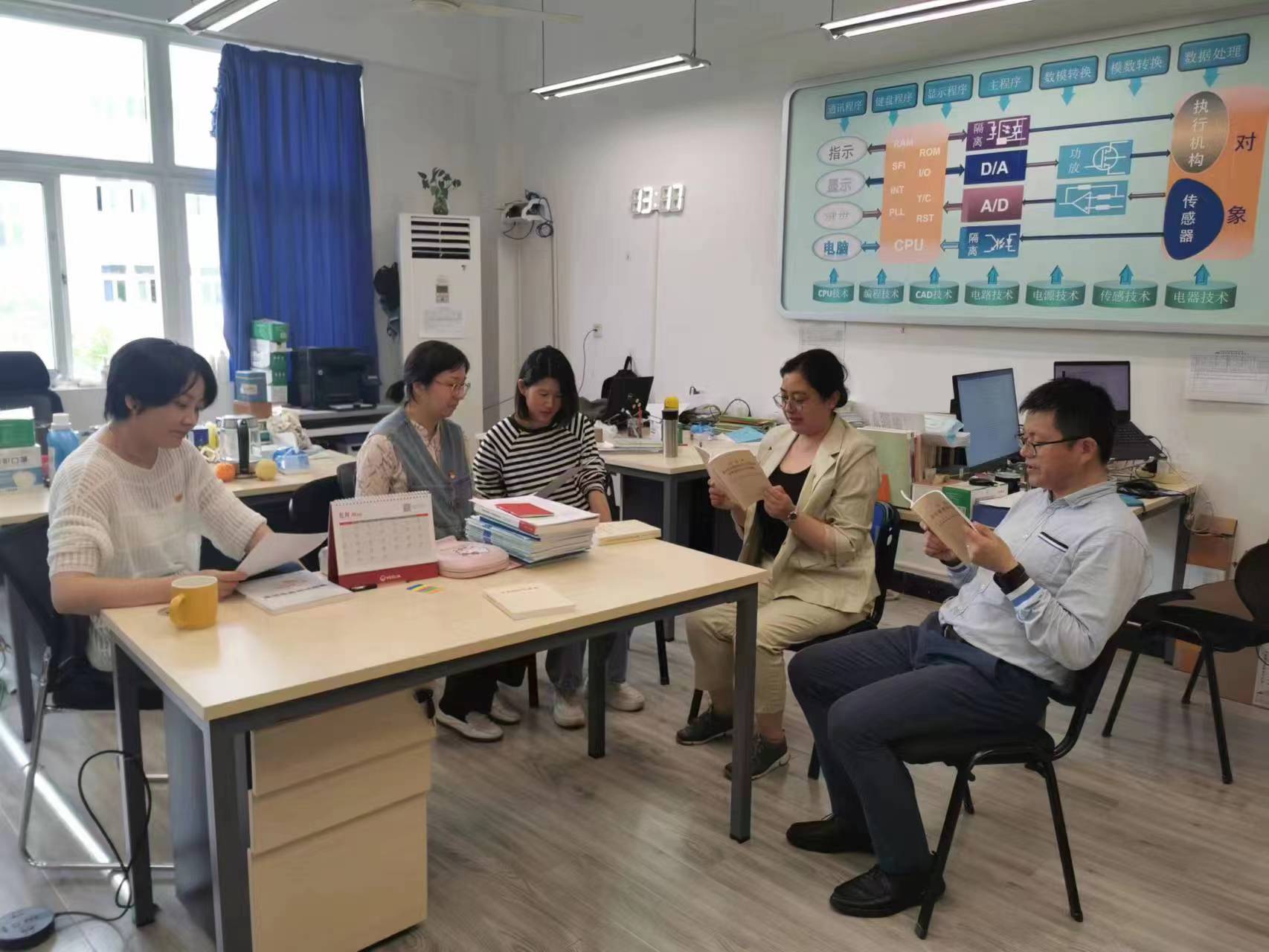 会上,老师分享了学习体会。高校,是国家培养人才的主要基地。身为高职院校教师,要保持初心,提高自己的科学技术和文化水平,学为人师,行为世范。弄清楚当老师的原因,上每一节课的意义,备课、参赛、指导比赛的意义,弄清楚从教以来的收获和缺失,弄清楚未来的教师之路,需要怎么走下去,目标在哪里。在高校学科不断变化的过程中,有传统的老牌专业,也有后起之秀,应用电子技术专业正在积极申报电子信息工程技术职业本科专业,如何保持自己的专业特色,并融入新的社会需求,也是对未来职业生涯发展的道路提示。
