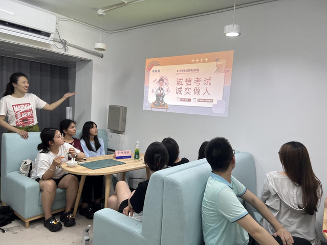 随后,学院高萌老师从校纪校规引入,结合实际案例给大家上了一堂诚信教育课。她指出,诚信是人生必修之课,拥有良好的诚信有利于塑造健康的心理素质。同时,指导同学们如何正确对待考前心理紧张和压力问题。