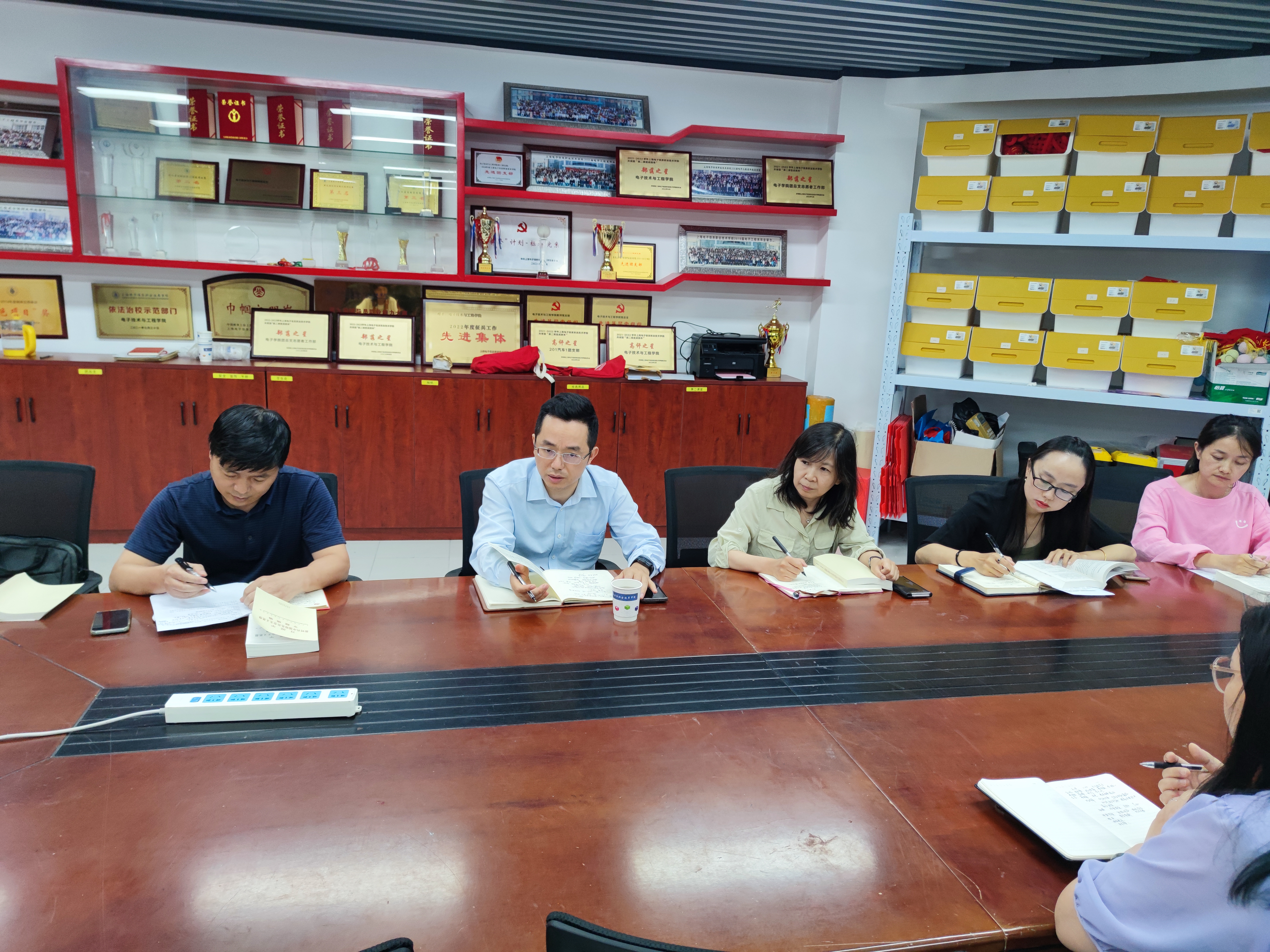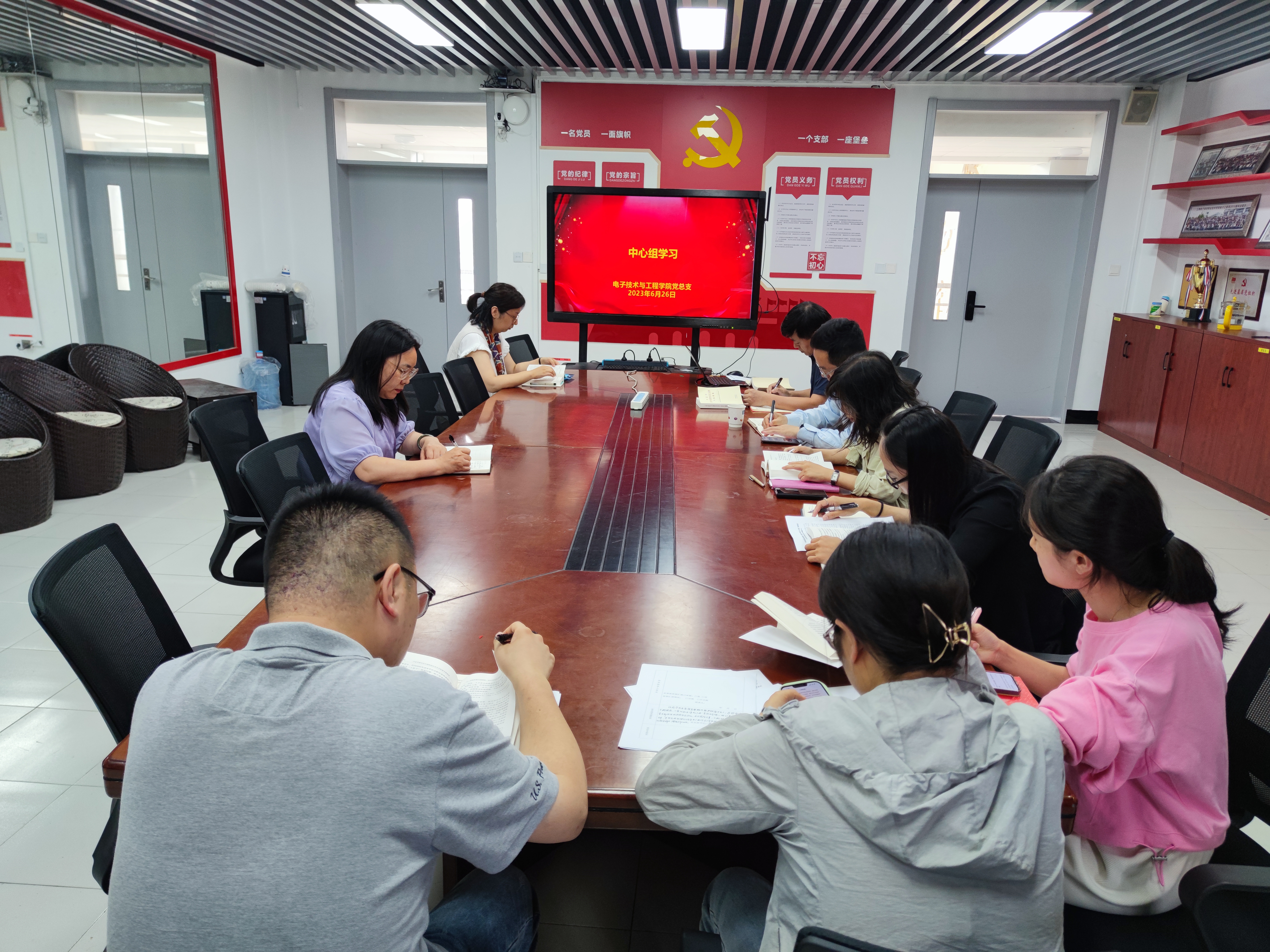 6月26日下午,电子技术与工程学院党总支中心组围绕“学习习近平新时代中国特色社会主义思想专题摘编,助力职业本科专业创建”主题开展集中研讨。党委副书记、院长赵坚到会指导,全体中心组成员参会。会议由党总支书记李军锋主持。