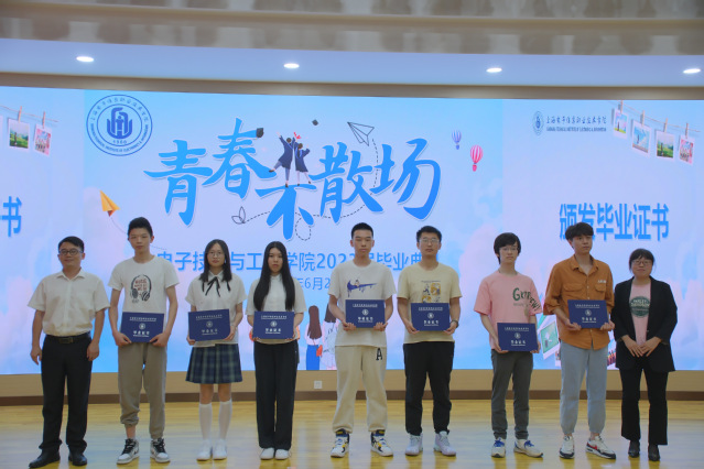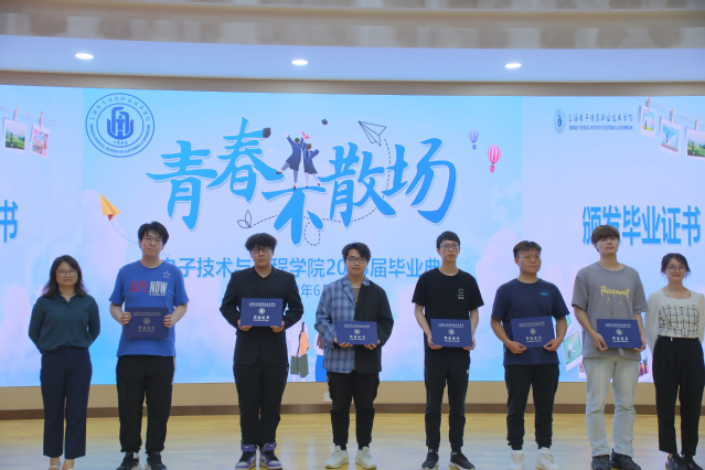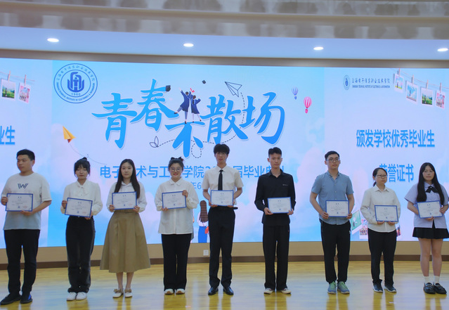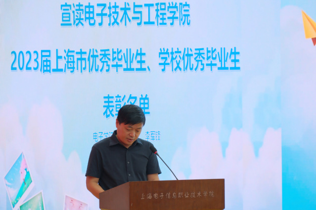 毕业典礼上,学院党总支书记李军锋宣读电子技术与工程学院2023届上海市优秀毕业生、学校优秀毕业生表彰名单。学校党委副书记、校长赵坚为上海市优秀毕业生颁发荣誉证书。学院领导为学校优秀毕业生颁发荣誉证书。