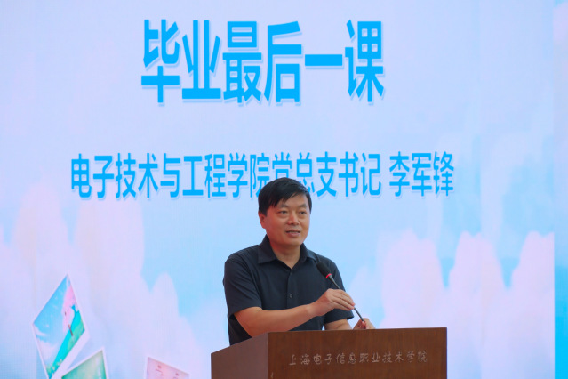 最后,学院党总支书记李军锋为大家上了毕业最后一课。他代表学校、全体教师,向2023届所有毕业生圆满完成学业,即将奔赴新的岗位和更加精彩的人生,表示热烈的祝贺。他指出,国家的高质量发展、学校的高速迈进,都离不开作为新时代青年的同学们。作为祖国未来的“大国工匠”,国家未来的创新者、拼搏者、奋进者,个人的发展同国家的命运紧紧联系在一起。希望同学们坚持用梦想去创造,用坚守去拥抱,用奋斗去实现,自觉担负起民族复兴大任,不断丰富知识、精湛技艺、提升素质,升华境界,成为国之栋梁,服务社会、成就自我。同时,祝福同学们未来一帆风顺、前程似锦、事业有成。