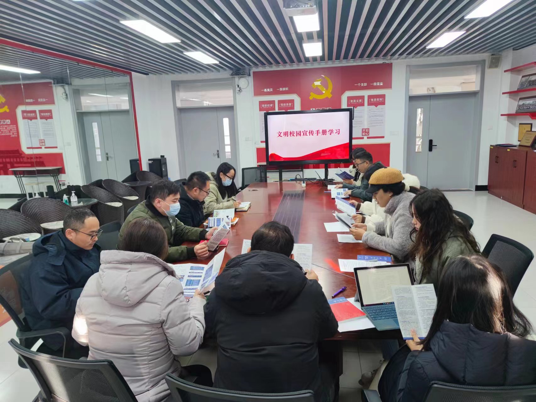 2023年12月,学院党总支开展教师思想学习活动,老师们认真学习了《群策群力建设文明校园 同心同德共筑美好家园创建 2021-2023 年度上海市文明校园宣传手册》等内容。