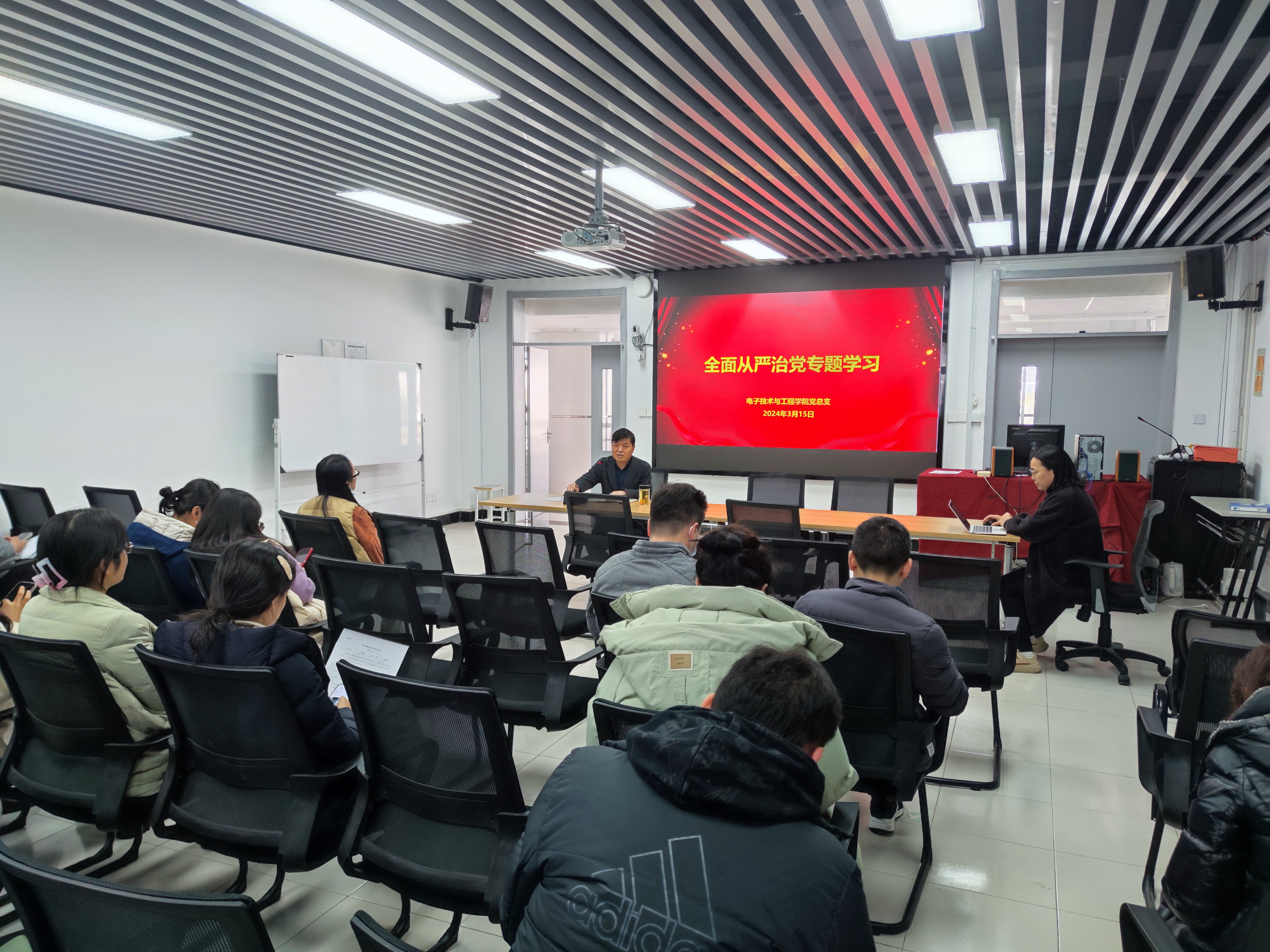 3月15日,电子学院在N309召开了全面从严治党及意识形态工作专题会,学院全体党员参加会议。会议由学院党总支书记李军锋主持。