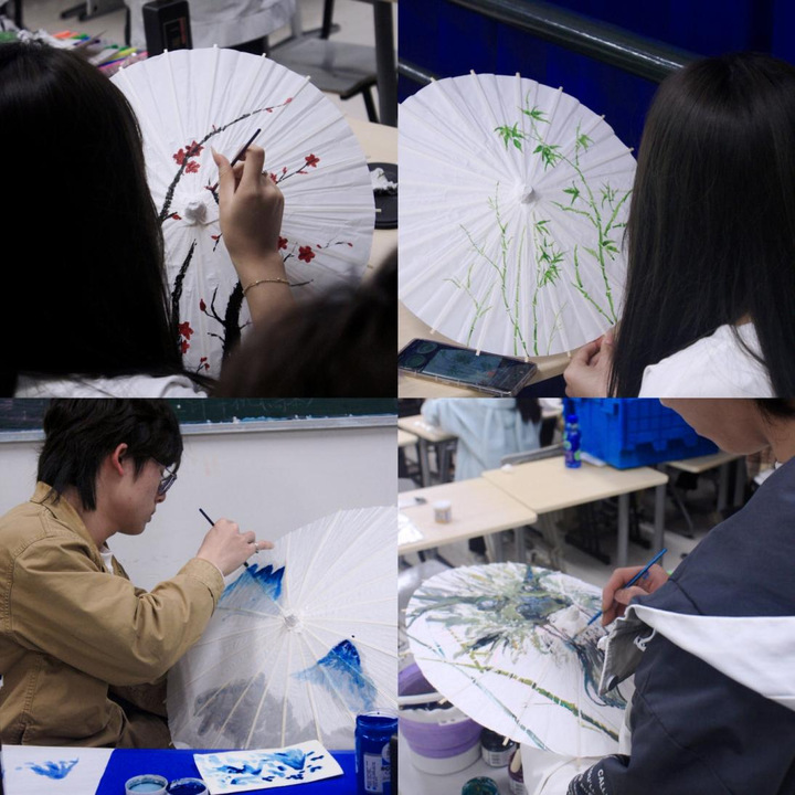 活动中,同学们以油纸伞为载体,通过细腻的笔触和丰富的色彩搭配,创作出了一幅幅精美的油纸伞画作。每一幅作品都充满了创造力和想象力,不仅展现了他们的绘画技能,更体现了他们对美的追求和对生活的热爱。