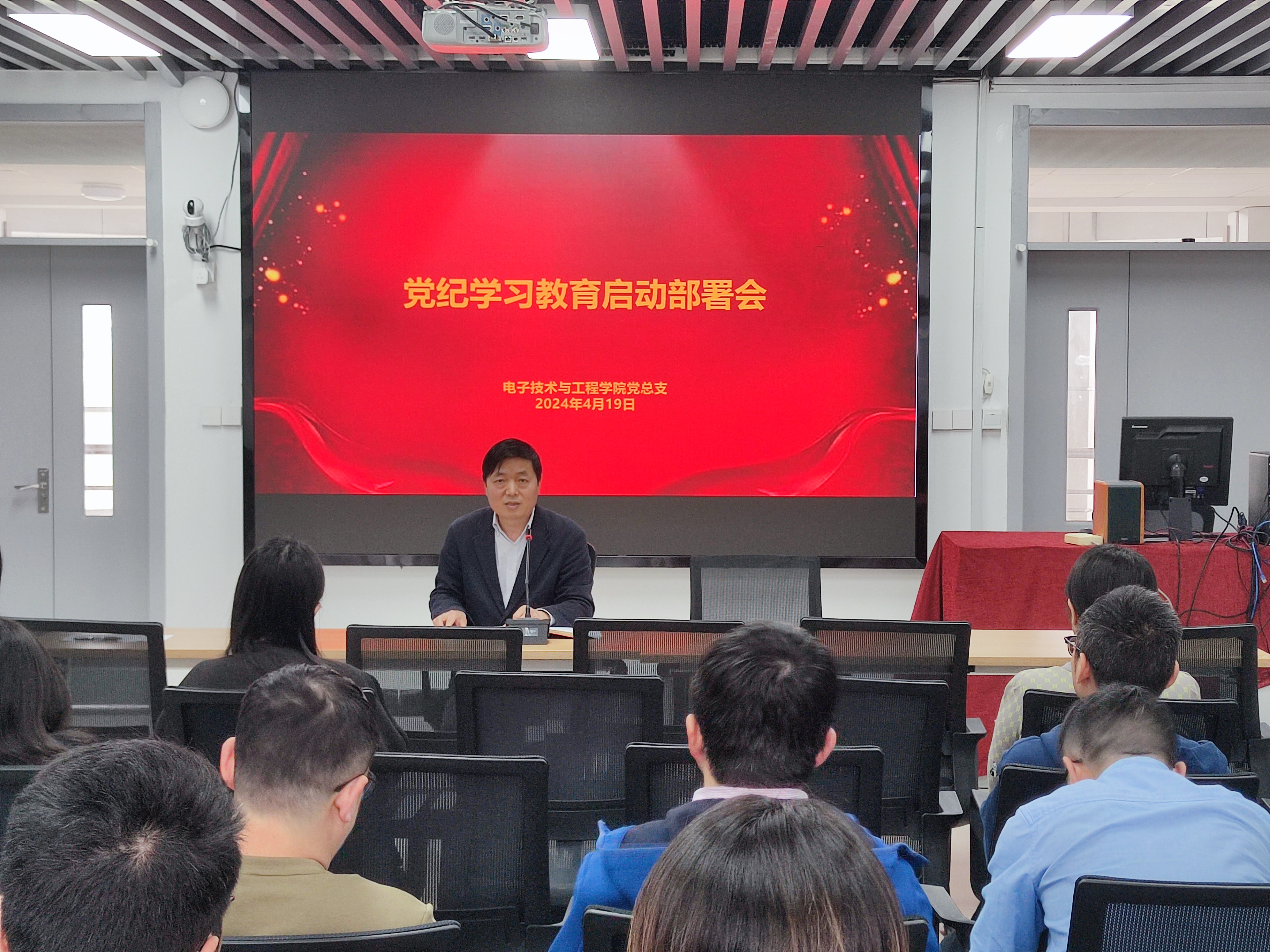 2024年4月19日,电子学院党总支在N309召开党纪学习教育启动部署会。电子学院党总支全体党员参加会议,党总支书记李军锋主持会议。