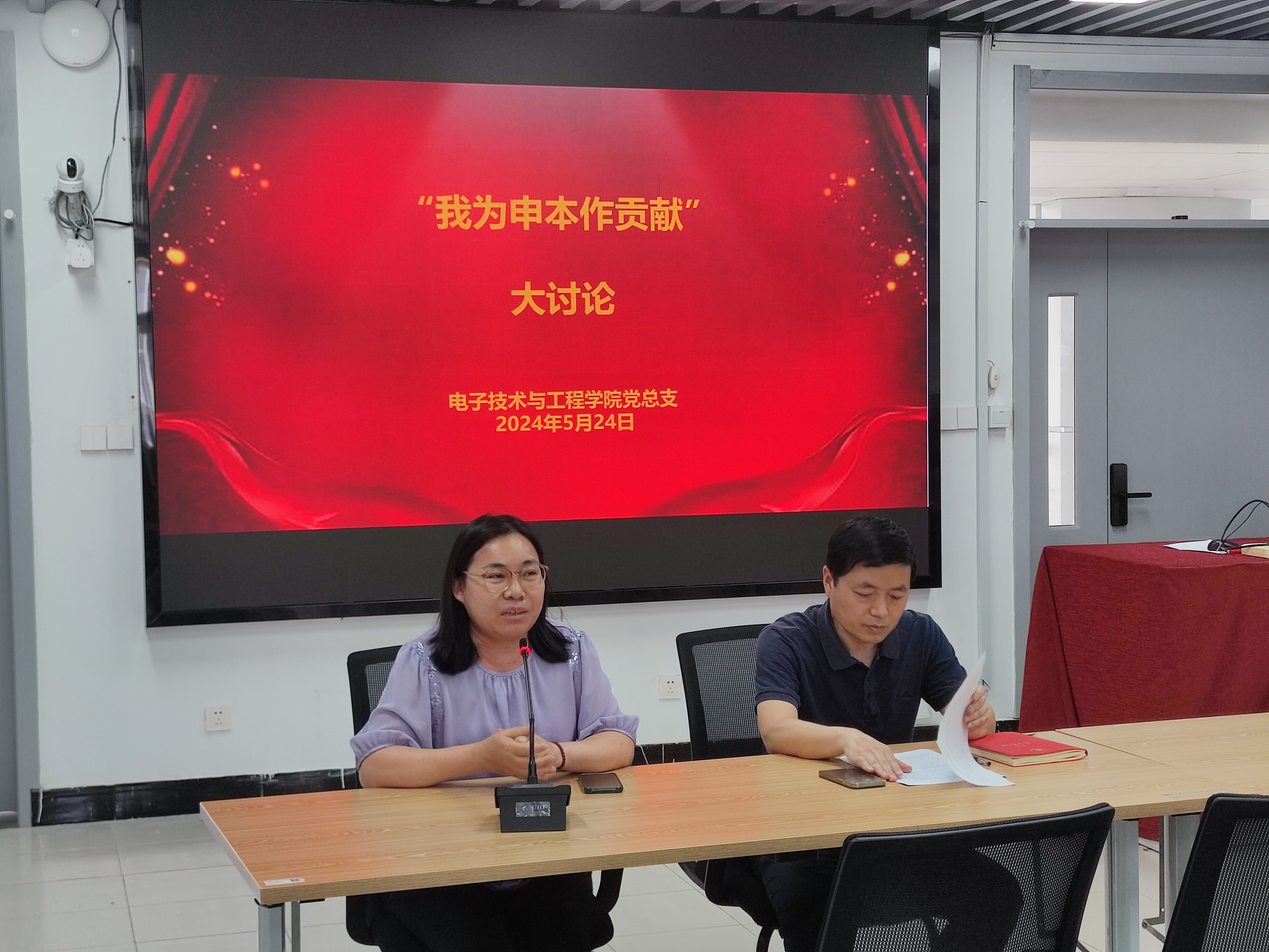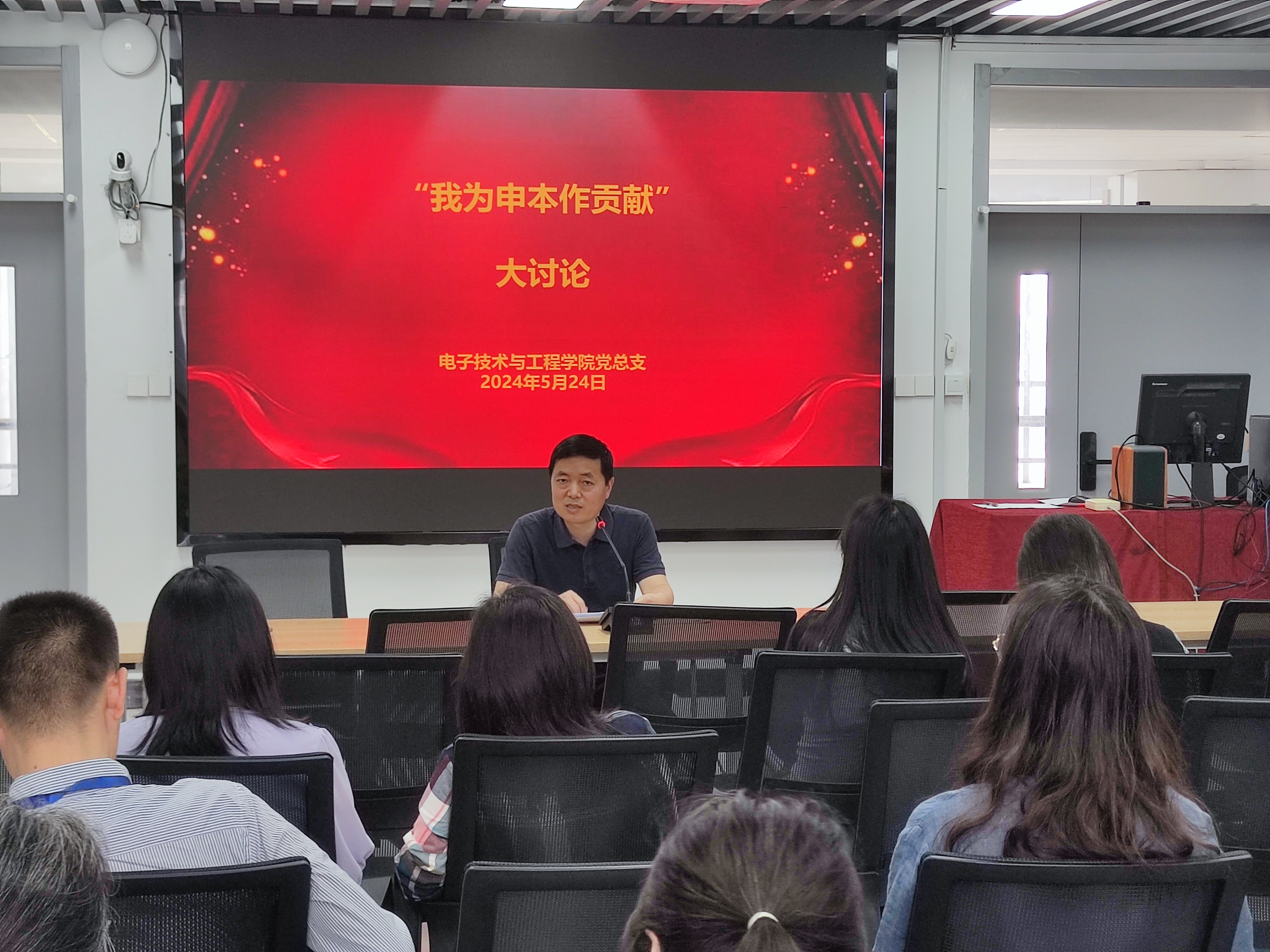 5月24日,电子技术与工程学院开展“我为申本作贡献”大讨论活动。活动由党总支书记李军锋主持,学院全体教师参加活动。