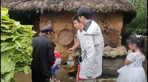 深入乡村走访,入户爱心送暖。宣讲团队一行来到龙庆彝族壮族乡猴子菁村,走访了当地多户彝族贫困家庭,送上食用油、大米等慰问品。团队成员入户进行国家和地方的资助政策宣传、解读,与村民们进行了亲切交流,解答了他们关于资助政策的疑问,宣传国家教育公平教育的原则和政策,鼓励学生们珍惜学习机会,勇敢追求梦想。