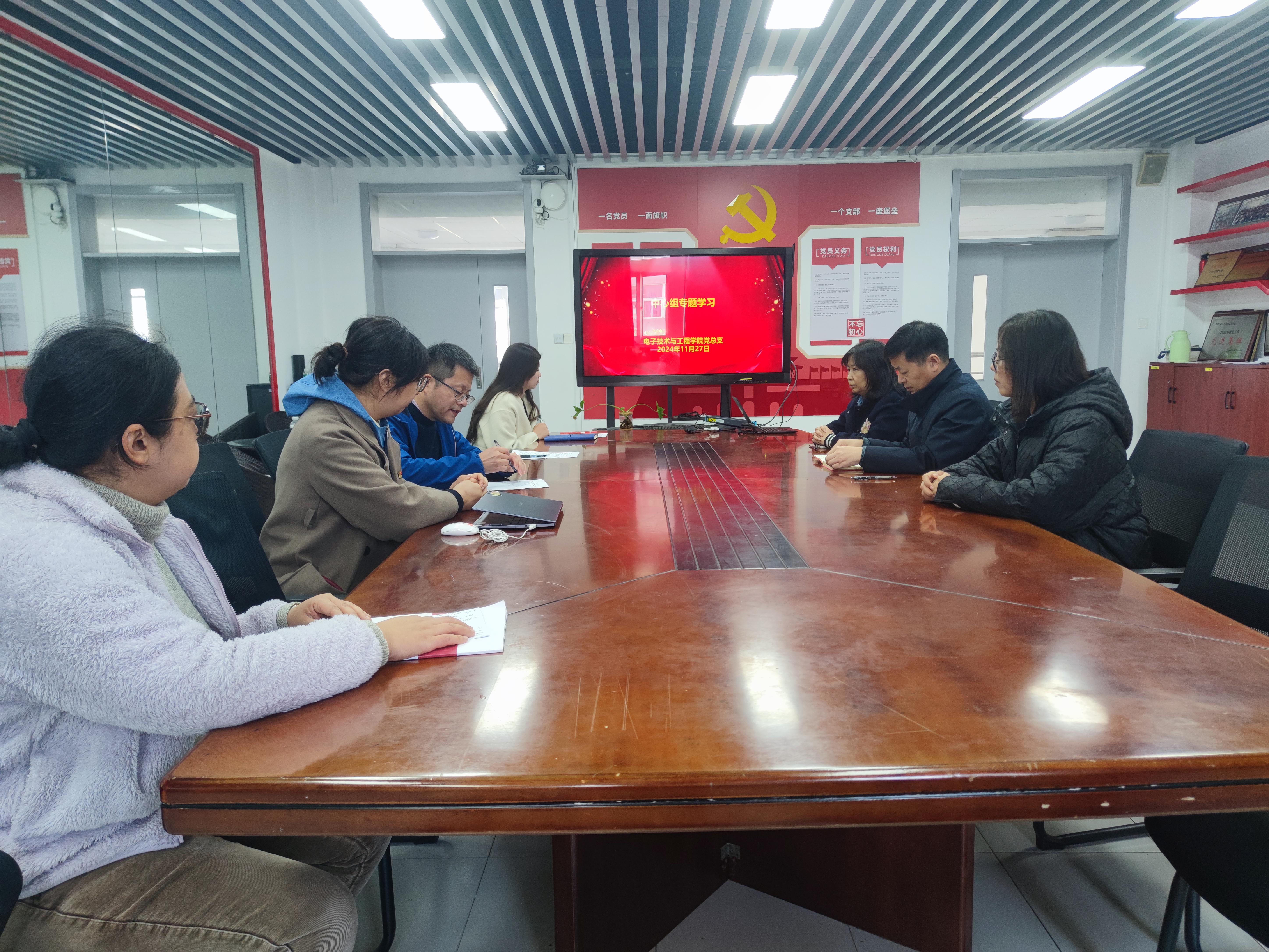 11月27日下午,电子技术与工程学院党总支在N307会议室召开理论学习中心组会议,专题学习党的二十届三中全会精神。学院党总支理论学习中心组成员参加会议。会议由党总支书记李军锋主持。