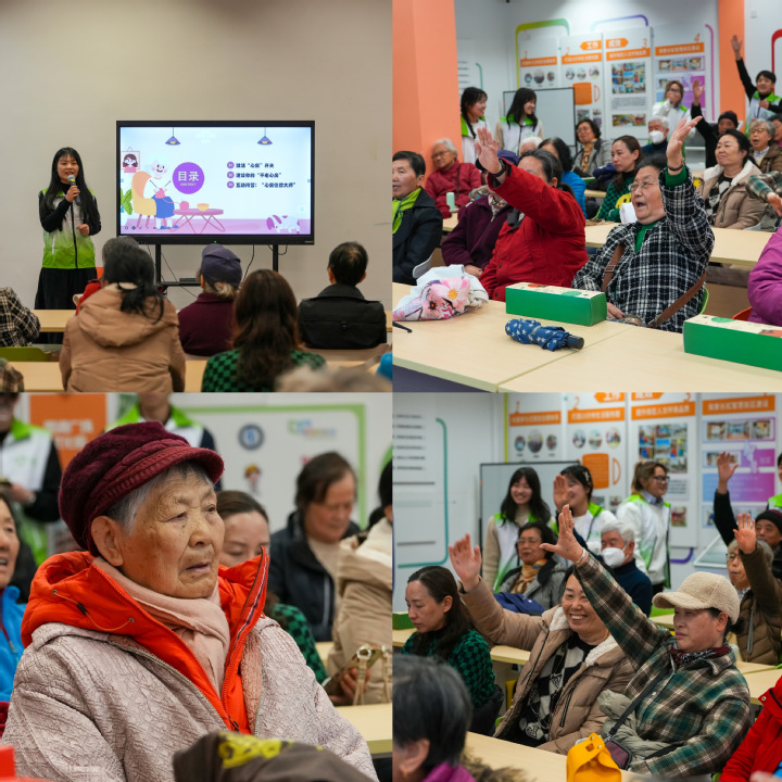 随后,杜珊老师为老人带来《不老心房焕新指南:银龄“焦虑大扫除”》心理健康知识讲座。杜老师以通俗易懂的语言,结合贴近生活的真实案例,深入浅出地向老人们讲解了如何提升心理健康认知水平、树立积极乐观的生活态度以及增强心理调适能力。讲座结束后,激动人心的有奖互动问答环节将现场气氛推向高潮,老人们踊跃参与,现场氛围温馨而热烈。