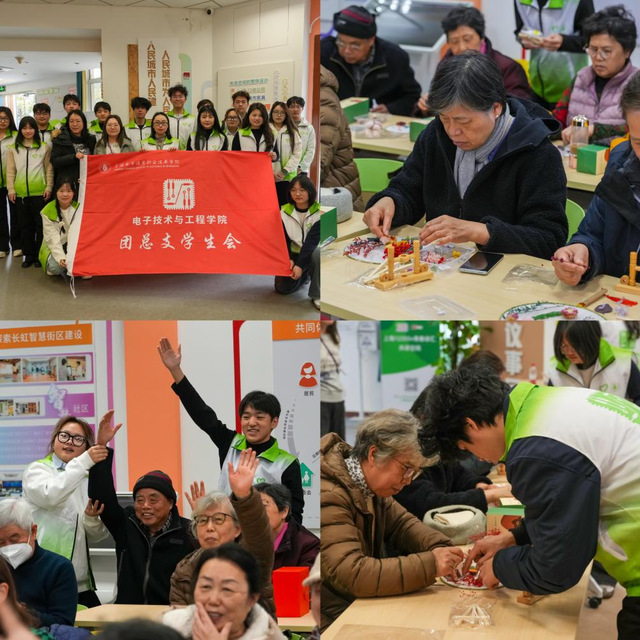 3月4日,电子学院师生们满怀热忱,走进徐汇区康健党群服务中心,与共建单位携手开展了“青春志愿行,温暖夕阳红”志愿服务活动。活动通过手势舞教学、心理健康讲座和非遗团扇制作等形式为社区老人送温暖。此次活动,不仅让社区老人们深切感受到了青春的活力与温暖,也让大学生志愿者们在奉献中收获了快乐与成长,进一步强化了他们的社会责任感和使命感。