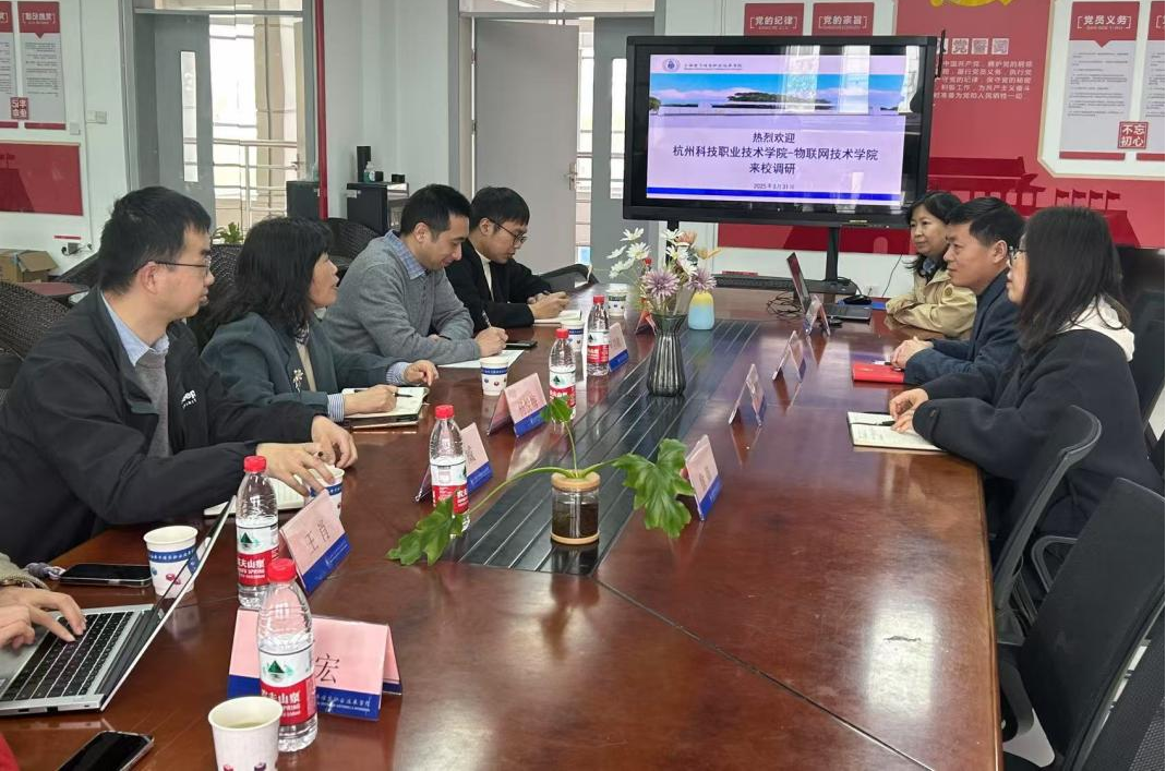 2025年3月31日,杭州科技职业技术学院-物联网技术学院杨悦梅院长、何剑敏副书记携骨干教师团队莅临我校电子技术与工程学院,就集成电路方向专业建设开展深入交流。此次交流活动旨在推动双方在集成电路领域的教育合作,促进相关专业的开设与发展。电子技术与工程学院院长邵瑛、书记李军锋、副院长张秋香、实训室主任徐御出席交流会。