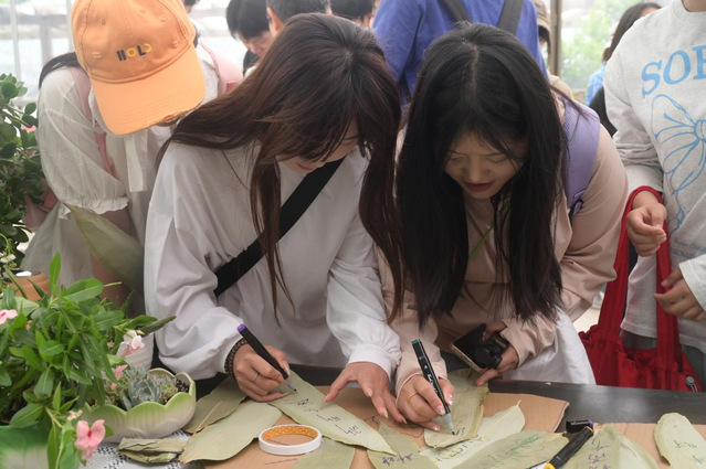 同学们抵达后,一场别开生面的活动正式拉开帷幕。大家以艾叶签到,在艾草的清香中感受传统文化的韵味,并纷纷写下饱含深情的祝福语,开启当天的精彩之旅。