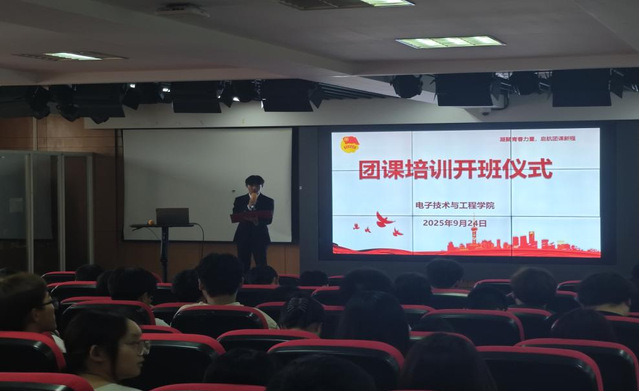 为深入学习贯彻习近平总书记关于青年工作的重要思想,进一步端正入团动机、夯实理论基础,2025年9月24日中午,电子技术与工程学院在I401举行2025年下半年入团积极分子团课培训开班仪式。本次仪式由团总支副书记赵维杰主持,团总支书记潘永梅、全体团学干部及79名入团积极分子参加。