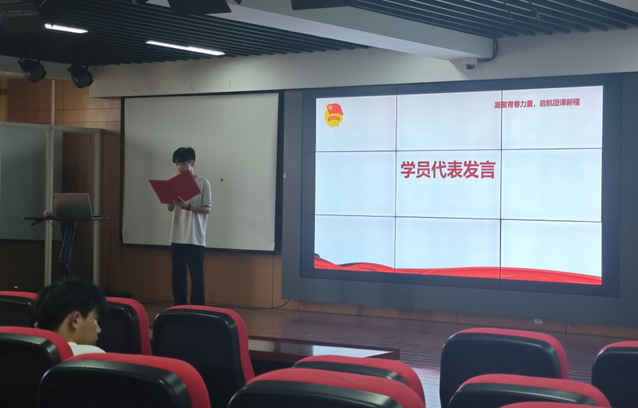 随后,2024级智能控制2班的冯锦渊同学代表全体学员发言。他表示将努力做到三点:一是认真学,深入钻研团的知识,深刻领悟为何入团、入团后应承担的责任与使命;二是踏实悟,结合自身的学习生活实际,思考如何以青年的担当践行团的精神,展现新时代青年的风采;三是积极做,将所学知识转化为实际行动,从身边的小事做起,以实际行动展示入团积极分子的良好风貌。冯锦渊同学质朴而坚定的话语,赢得了全场热烈的掌声。
