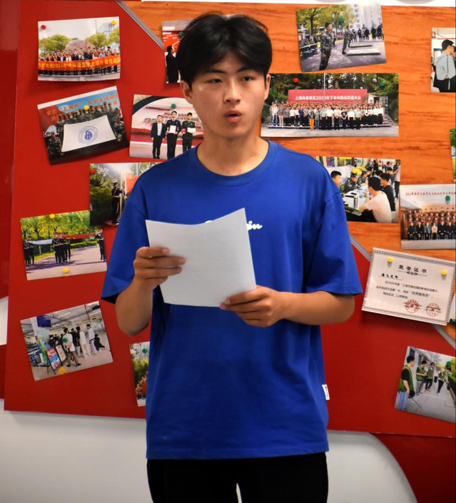 在“报国志・匠人心”主题征文分享环节,23智控1班高保斌同学分享的《以红为魂,以技为刃:新时代青年的报国答卷》,结合个人成长与专业方向,深刻领悟到老一辈匠人“毫厘之间见真章”的执着,决心以红色精神为指引,以精益求精的匠心打磨专业技能,在时代浪潮中扛起青年责任。22电竞(贯通)1班朱浩天同学为大家分享《弘扬红色精神,竞放非凡无限》,他以参观中共一大会址的经历为引,表达了传承红色精神、坚定理想信念,用专业技能展现新时代青年奋斗风采的决心。两位同学以饱满的热情、真挚的情感,声情并茂地朗读征文里的动人段落,将个人成长与专业理想、家国情怀、匠心传承紧密相连,展现出新时代青年愿以专业技能为笔,在祖国发展蓝图上绘就绚丽篇章的壮志豪情。