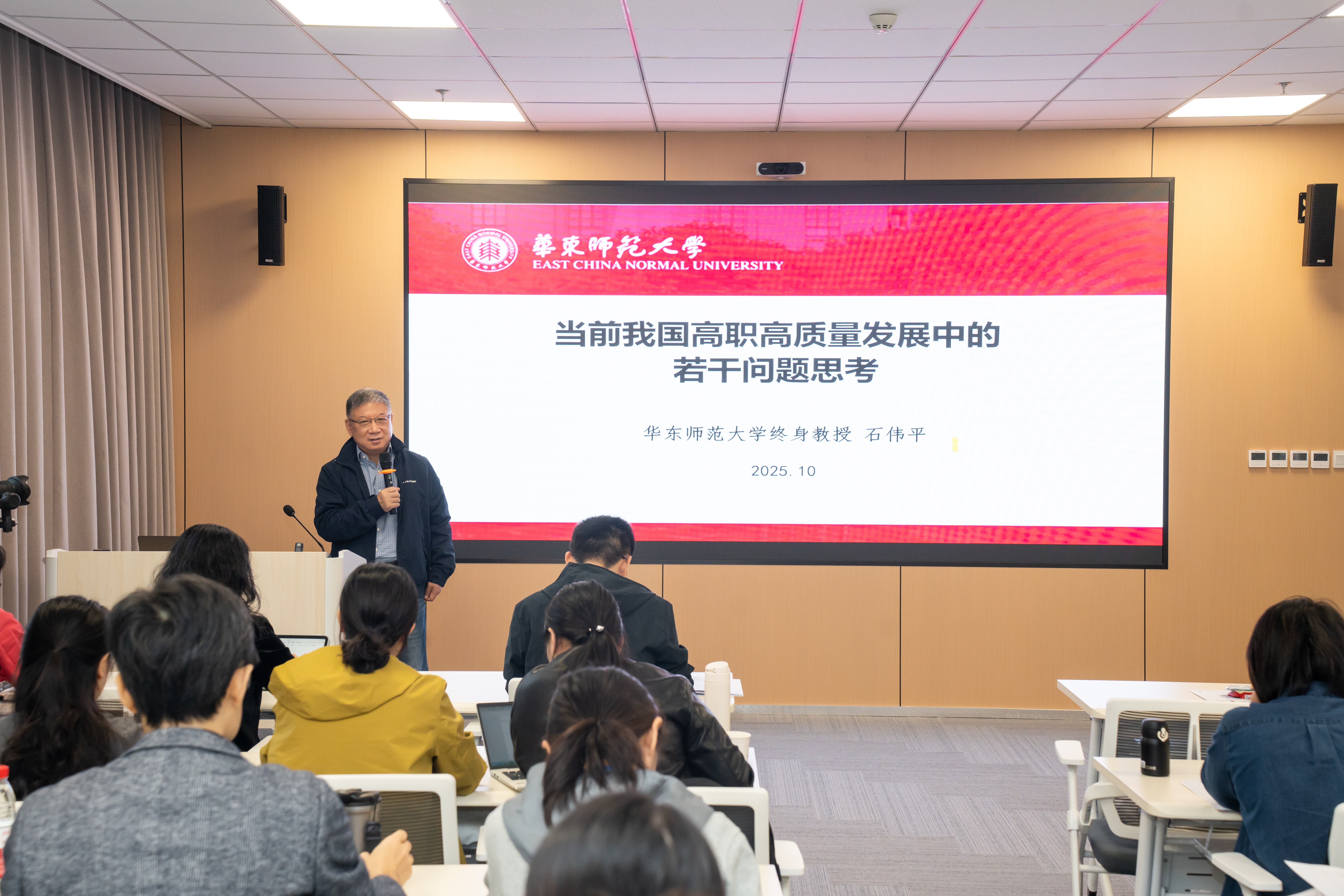 电子技术与工程学院党总支书记李军锋向与会嘉宾、各位学员介绍了本次示范国培的内容与特色。华东师范大学终身教授石伟平以“当前我国高职高质量发展中的若干问题思考”为题,为学员们带来了权威的研究成果与职业教育政策理论分析。